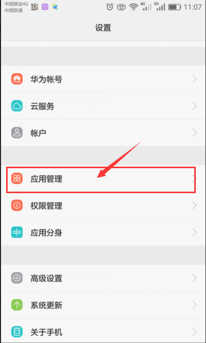 2.1、打開設(shè)置——選擇應(yīng)用管理,如下圖所示: