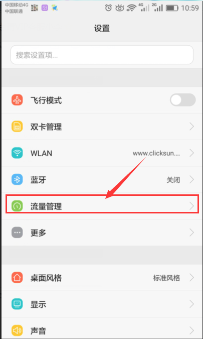 7.1、點(diǎn)擊設(shè)置,進(jìn)入頁面 7.2、進(jìn)入頁面點(diǎn)擊“流量管理”7.3、找到點(diǎn)晴信息通,重新去掉勾選,再重新勾選,如下圖: