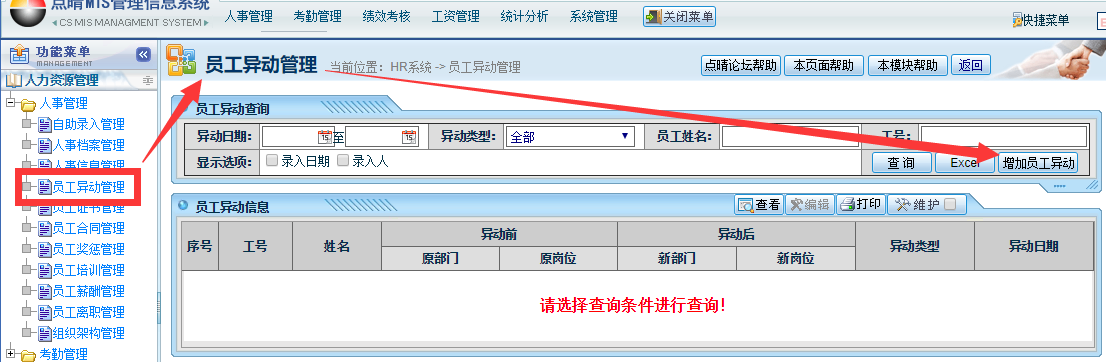 :點晴OA中如何進行員工部門和崗位調(diào)整?